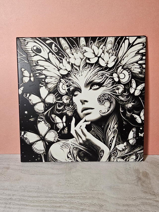 Gravure sur carrelage Femme papillon